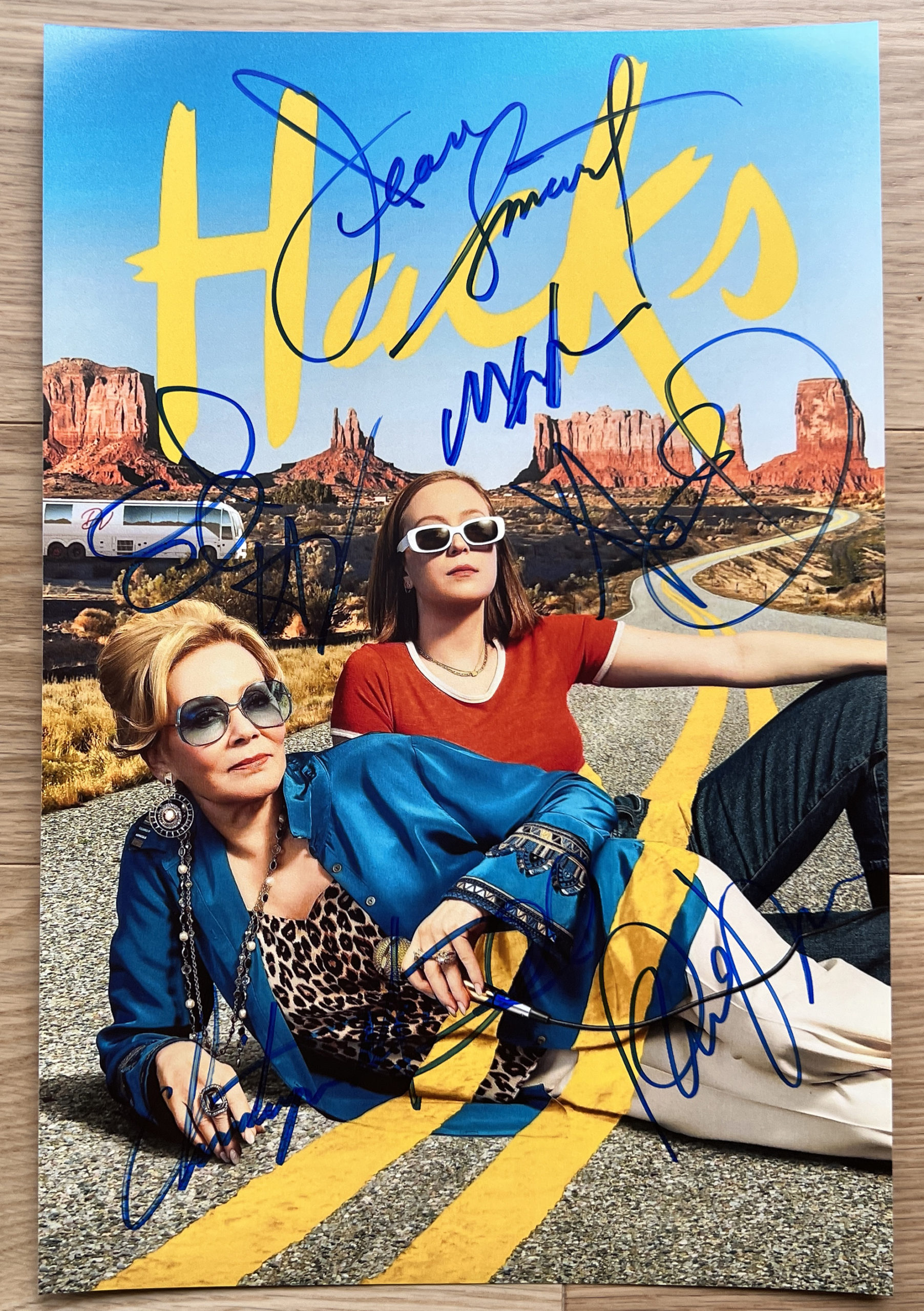The photo has been signed beautifully in blue felt tip marker on the photograph and it looks absolutely stunning. These signed photos are extremely limited as not many were signed. The photograph comes signed by 6 cast members, including, Jean Smart, Hannah Einbinder, Carl Clemons-Hopkins, Mark Indelicato, Paul W. Downs and Christopher McDonald.